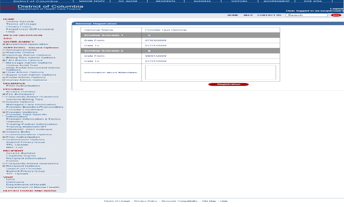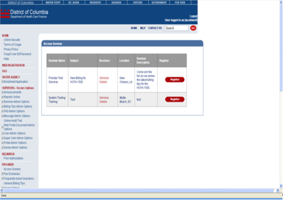 - After logging in to the secure Web Portal, on the left side of the Home Page in the navigation bar, the user should click Access Seminars.