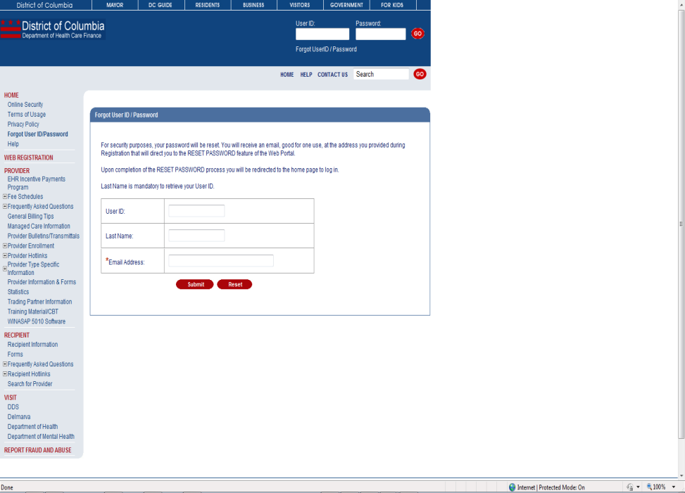 - If you have forgotten your User ID, you must enter your last name and email address.
